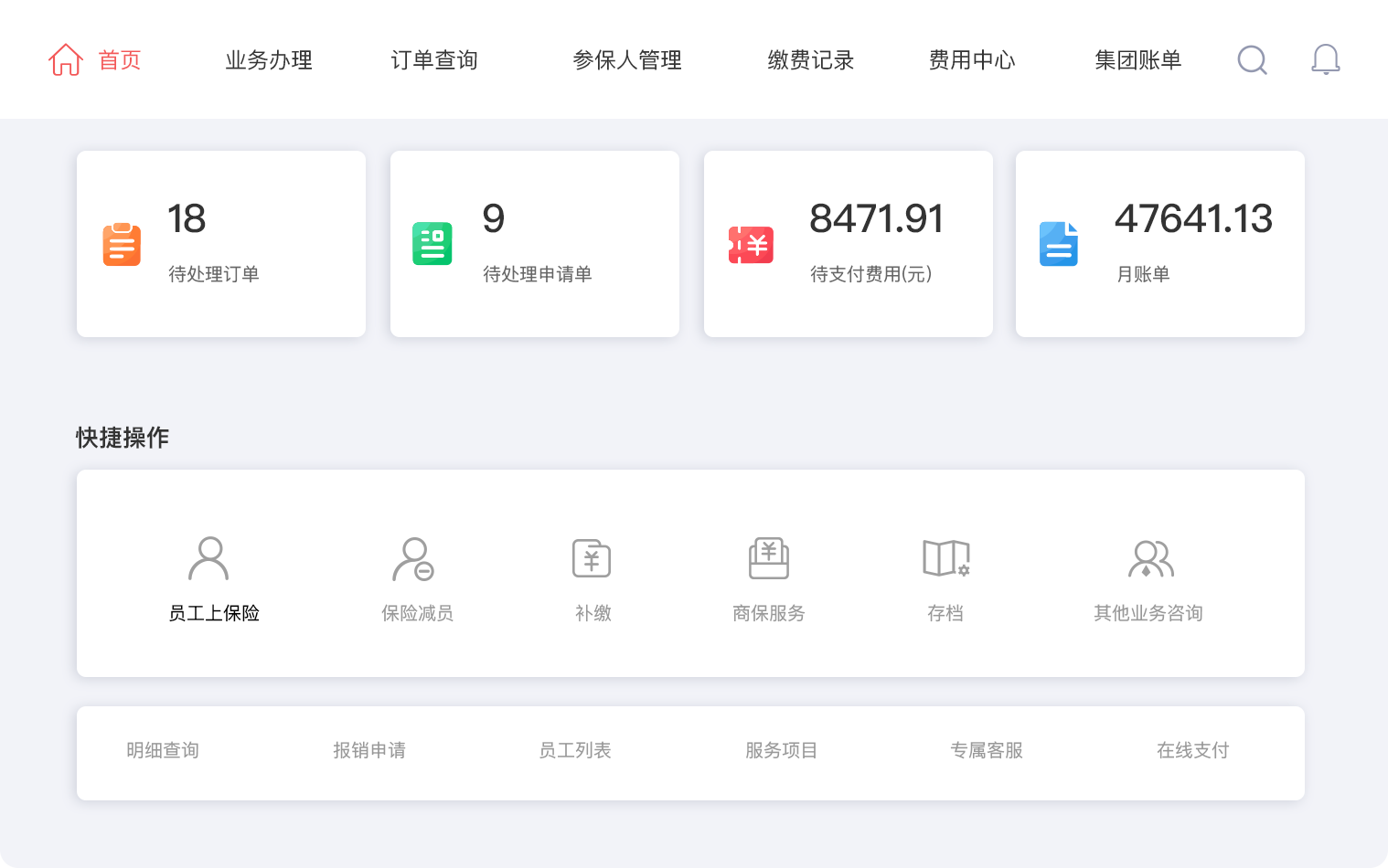 支持用户一键发起保险、公积金、薪酬等多项综合服务